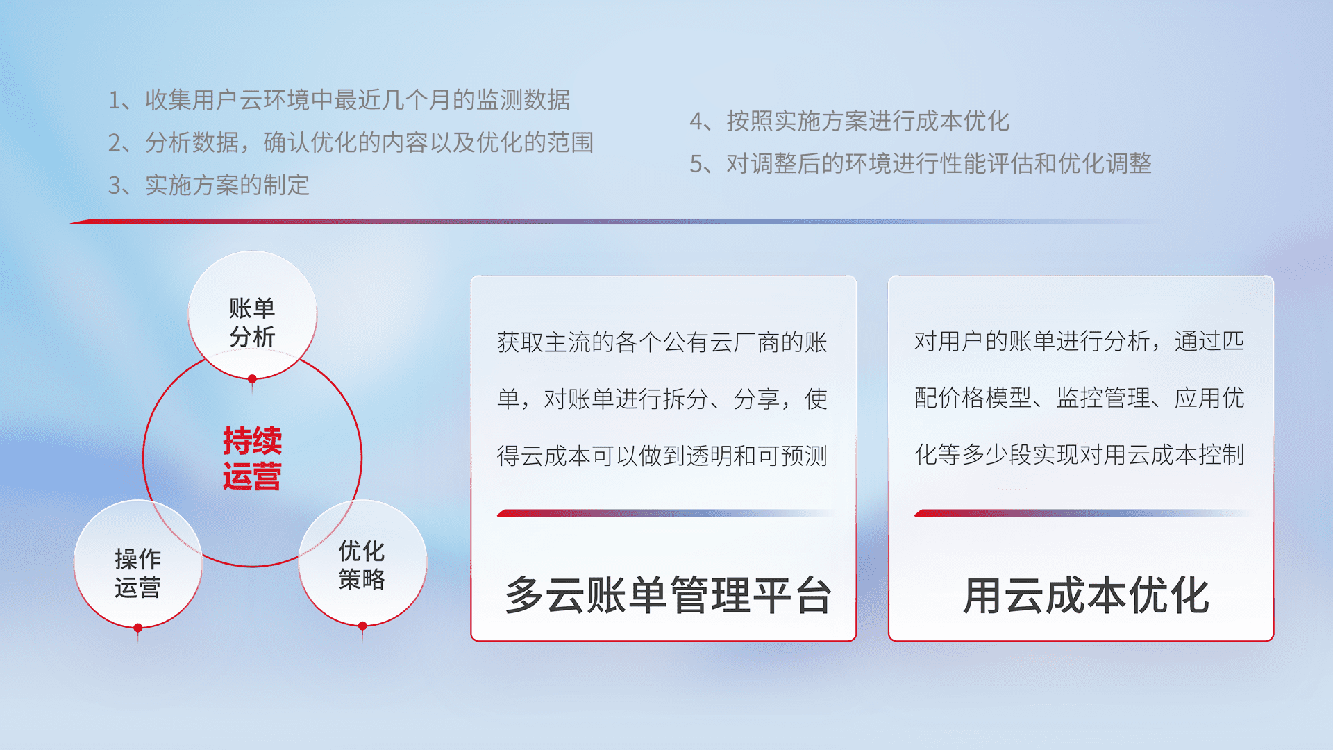 监控业务系统资源开销,,,对资源的消耗精确计量,,,实现费用的透明化管理,,不断提升资源使用率,,,调整资源购买方式,,,,降低资源费用成本,,用云成本可预测、、、用云费用可优化,,,,云资源配额有据可依。。